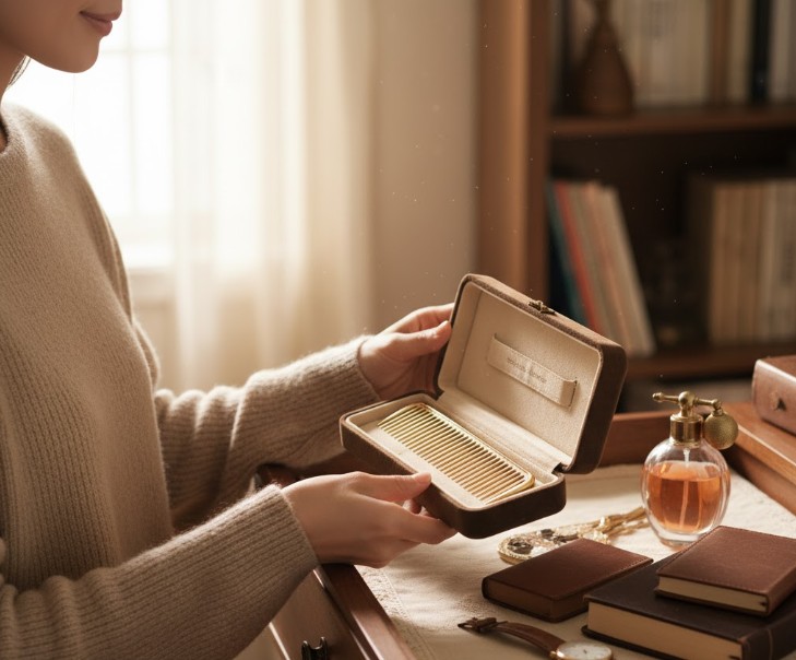 使い終わった後のほんの10秒の手間が、5年後、10年後のコームの状態を左右します。使用後は、まずコームに絡んだ髪の毛や大きなホコリを指で丁寧に取り除いてください。その後、メガネ拭きのような柔らかい布(マイクロファイバークロス)やティッシュで、表面を優しく拭き取ります。この時、皮脂やスタイリング剤の油分を軽く拭き取るイメージで、ゴシゴシと強く擦らないことが重要です。