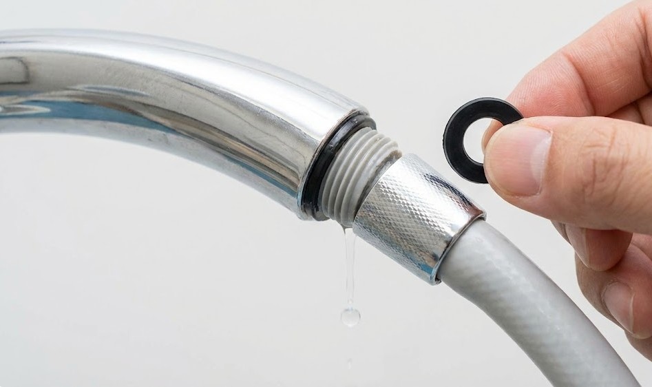 ゴムパッキンは消耗品です。特にシャワーヘッドを頻繁に付け替えたり、掃除のたびに外したりしていると、摩擦で痩せたり切れたりします。この場合、ホームセンターの水道用品売り場で数百円で売っている「G1/2」規格などの適切なパッキン(SANEIやカクダイなどの汎用品でOK)に交換すれば、嘘のように水漏れが直ることが多いのです。