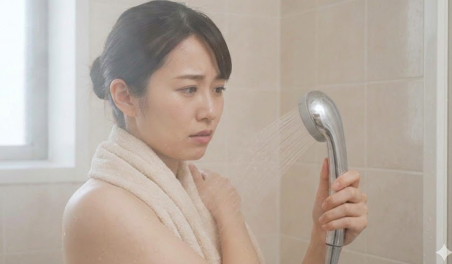 水が極小の霧状(ミスト)になると、普通のシャワーの水滴に比べて、空気に触れる表面積が爆発的に増えます。そうすると、シャワーヘッドから噴出されて肌に届くまでのわずかな滞空時間の間に、浴室内の冷たい空気によって熱を奪われ、急激に冷やされてしまうんですね。